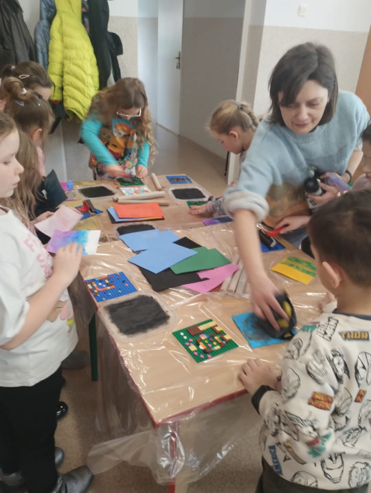 Zimowe klockoobrazy- warsztaty plastyczne z Panią Izą Kot